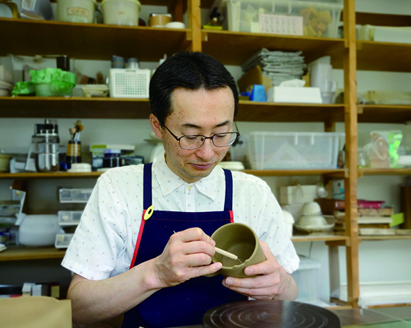 当初は、今の作品とは違い伝統的な陶芸作品を数多く手掛けていたという宏樹さん。今につながるデザインを取り入れるようになったのは、奥様であるマキコさんと共に創作活動をするようになってからだという。「妻は、印刷物や店内ディスプレイを手掛けるデザイナーでしたので、発想が豊かなんです。それに影響され、『デザインはこんなに自由でいいんだ』と気付き、どんどん変化していったんです」と宏樹さん。
