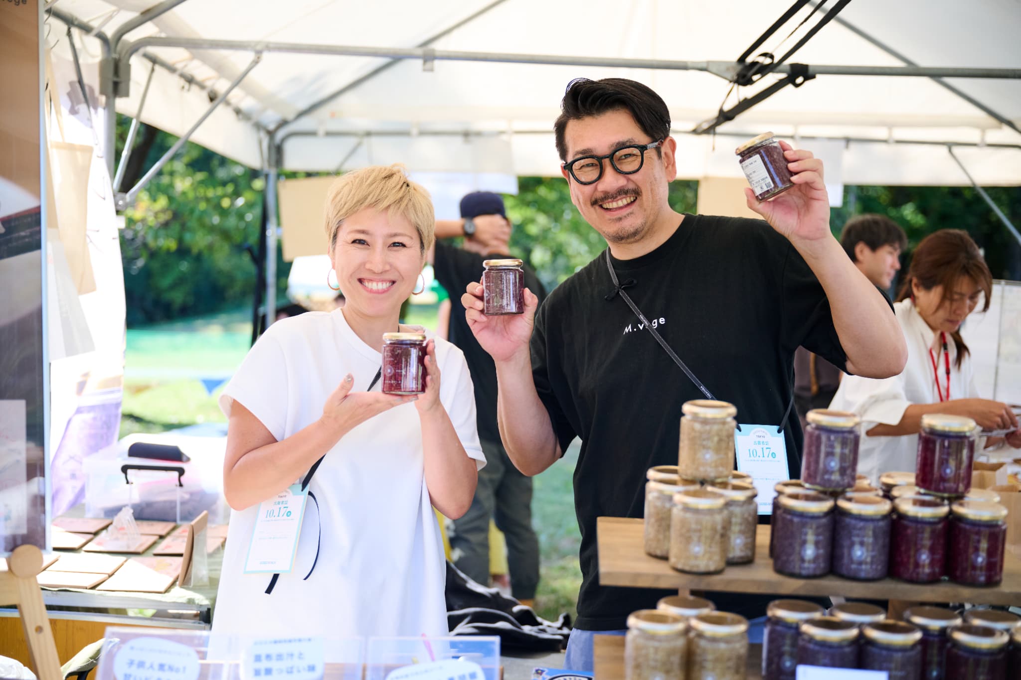 「いらっしゃいませ!」という元気のいい声とお客で盛り上がっているのは、京都府福知山市から出店した「M.vege」。地元で採れる玉葱を細かく刻んだピクルスソースを販売し、その試食を呼びかける声にお客さんが集まっていた。「実は僕、ピクルスが嫌いなんです(笑)。そんな僕でも食べられるピクルスをつくったら、お子様からお年寄り、そして玉葱が嫌いな方にも気に入っていただけるんじゃないかなという思いで開発しました」と、衣川さん。原料の玉葱を刻んでみたり、染めてみたりと試行錯誤しながら商品化し、2024年には、日本野菜ソムリエ協会が主催する「第15回調味料選手権2024」で審査員特別賞を獲得した。